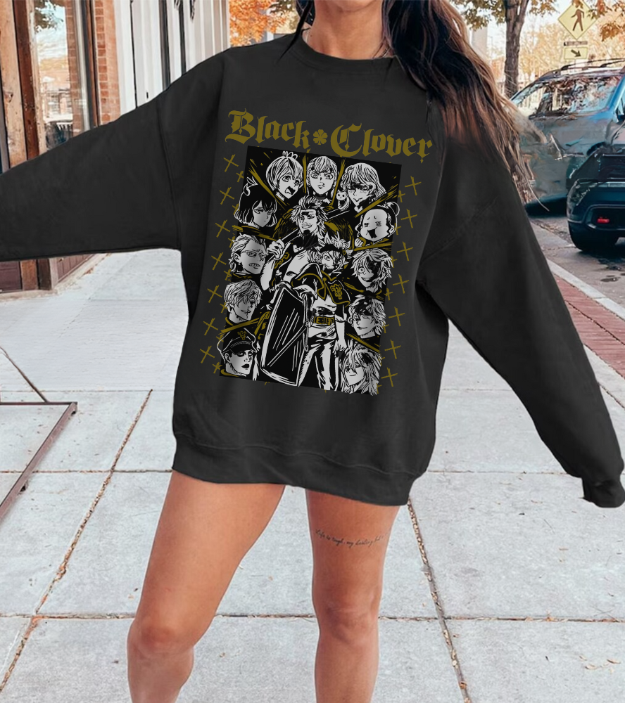 Black Clover Characters Sweatshirt – 100% Cotton Anime Pullover – Asta Yuno Noelle Crewneck for Fans