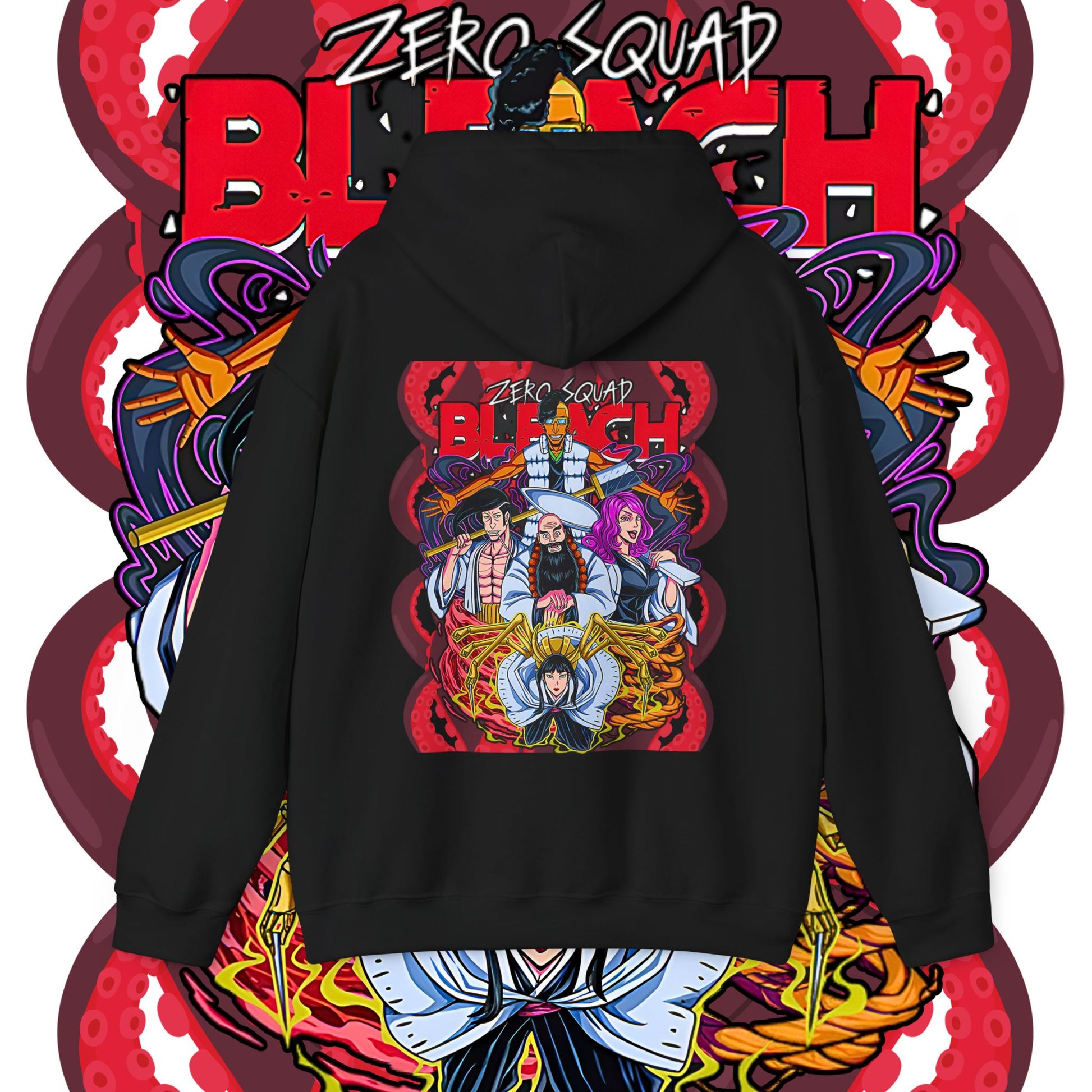 Elevate your anime wardrobe with this premium Zero Squad Bleach hoodie, crafted from 100% soft and breathable cotton. Featuring a bold and detailed back print inspired by the elite Royal Guard, this hoodie delivers comfort, durability, and standout anime style. Perfect for fans of Bleach, streetwear lovers, and collectors looking for high-quality character apparel. Ideal for casual wear, conventions, gifting, and everyday outfits.